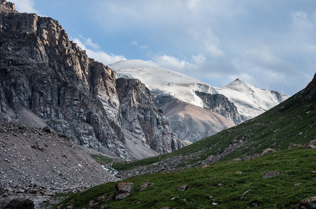 28 I přes lehkou nepřízeň počasí se rozhodujeme vystoupat na bezejmenný kopec nad údolím (na fotografii vpravo), jenž slibuje dosažení nadmořské výšky 4000 m. Ačkoliv se zdá na dosah ruky, vzdálenosti ve velehorách rády klamou.
