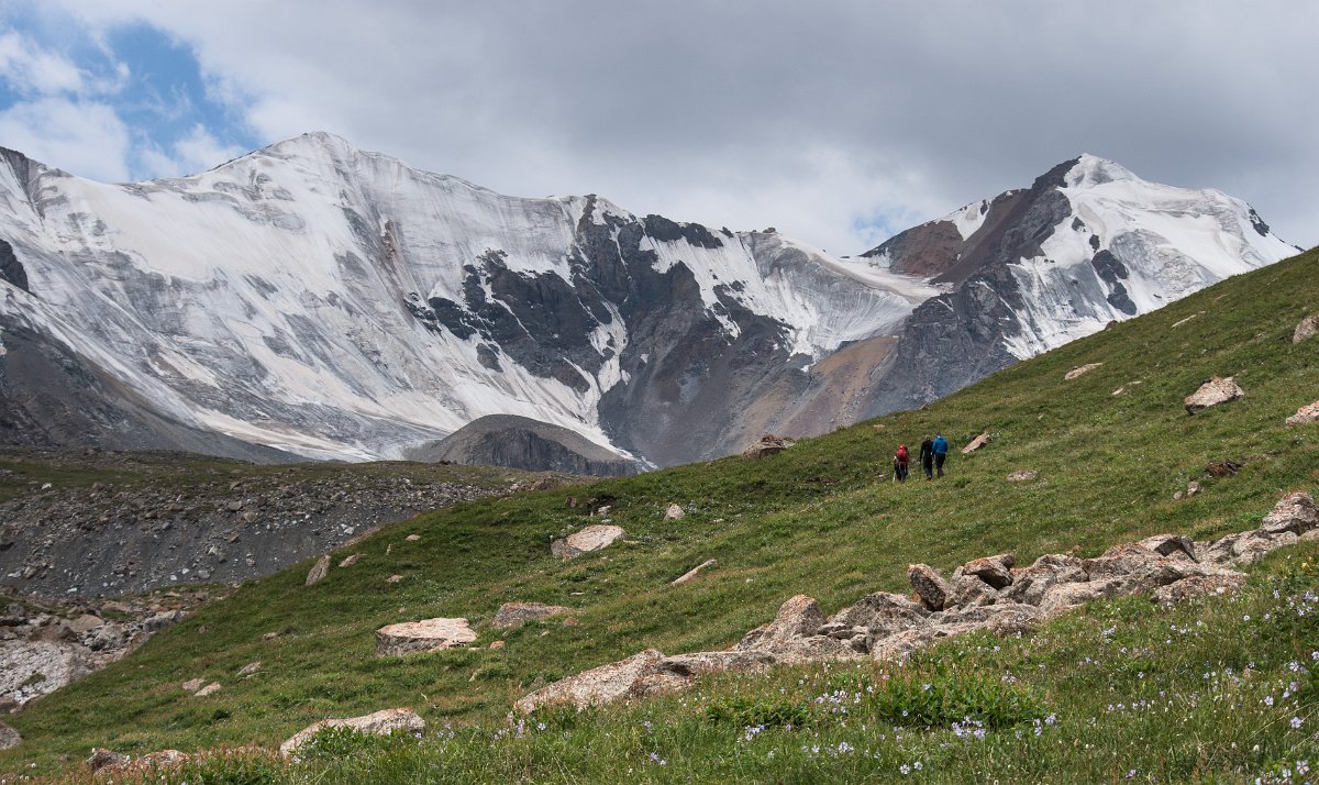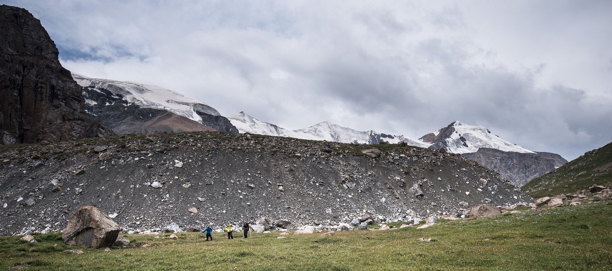 20 Stoupáme údolím vzhůru po rozkvetlých loukách, suťovisky i podél ohromných ledovcových morén. Bohužel nás po pár kilometrech Tom s Ondrou opouští a vrací se do základního tábora.