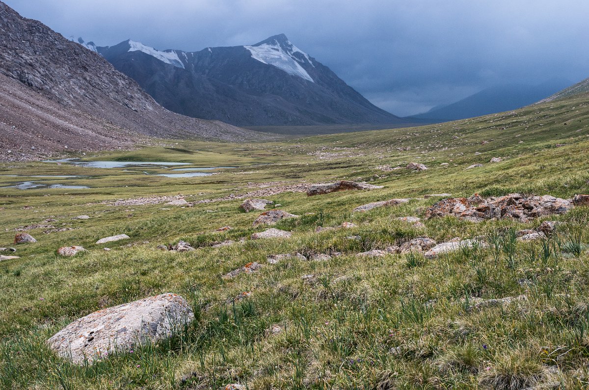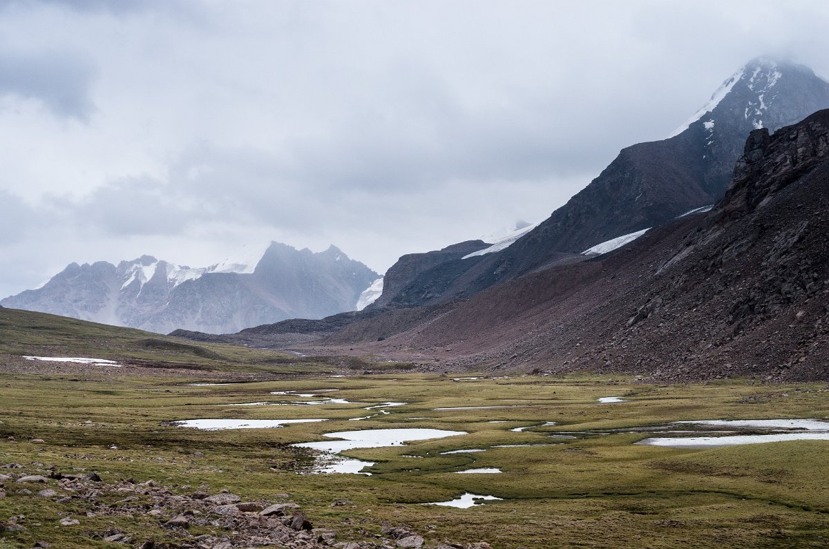 26 Po 2 hodinách se dostáváme do sedla, ze kterého se otevírá pohled na zamokřenou tundru ve výšce 3500 metrů nad mořem. Scenerie silně připomíná mé milé Norsko.
