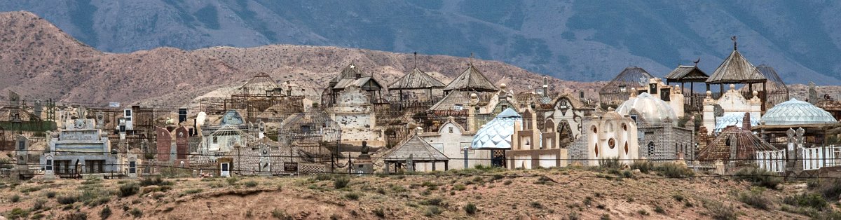 47 Cesta po jižních březích Issyk-kulu vede přes polopouštní oblasti, které nejsou tak turisticky profláklé, jako břehy severní, přesto je zde spousta zajímavých míst k vidění. Třeba kaňon "Skaska" (v překladu pohádka) podobný americkému Grand Canyonu, místa s petroglyfy (obrazci pravěkých kultur vyrytých do skal) či na kopcích vypínající se kyrgyzské hřbitovy. Všimněte si náhrobků ve tvaru jurty!