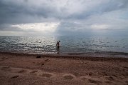 46 Adis byl neskutečně spontánní chlapík - nejprve nám sděluje, že smrdíme (což ostatně byla pravda - po těch dnech na horách), následně zastavuje a tak jak ho pánbůh stvořil, vbíhá do vod jezera Issyk-kul. I následujeme jej.