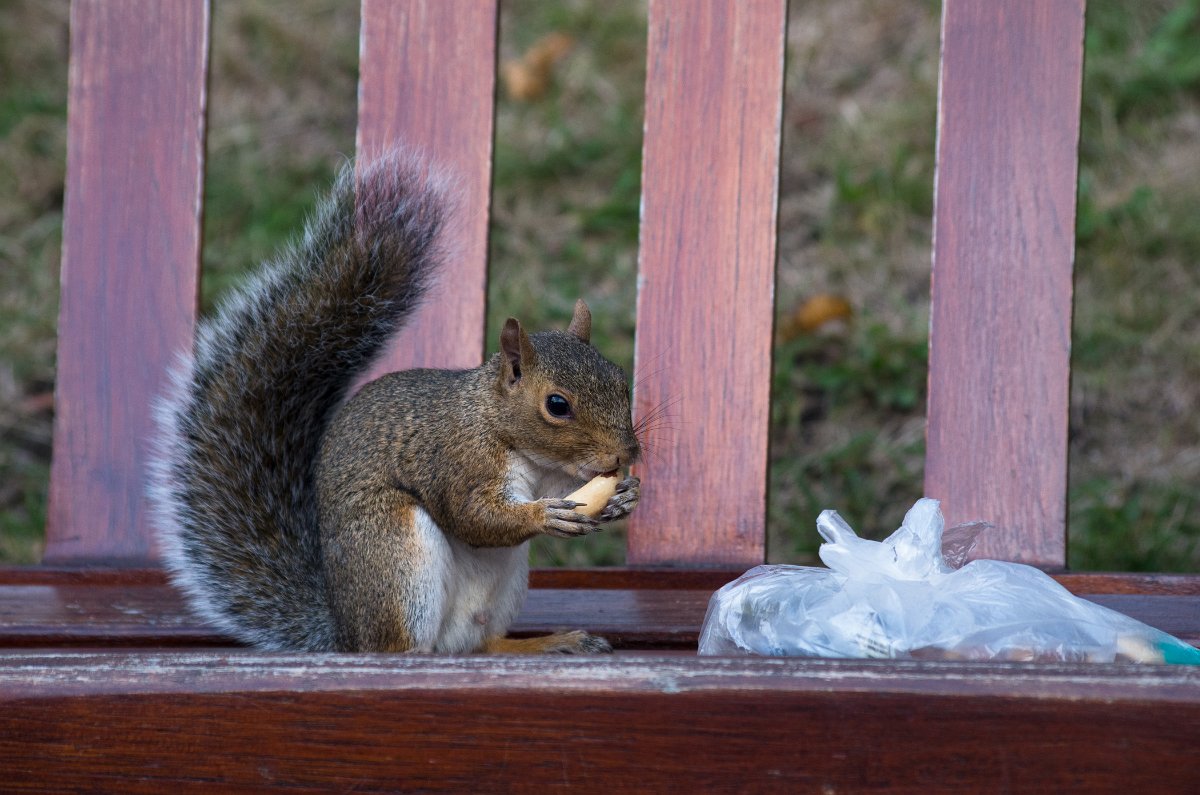 12 V parku potkávám spoustu zvídavých a skoro ochočených veverek, které zbaští vše, co jim přijde pod tlapky.