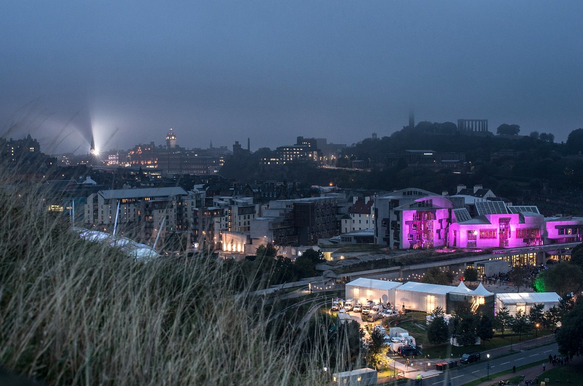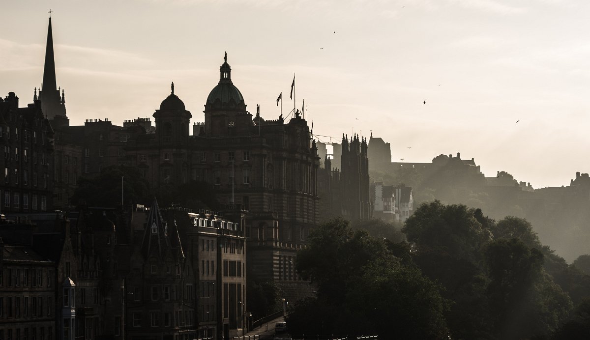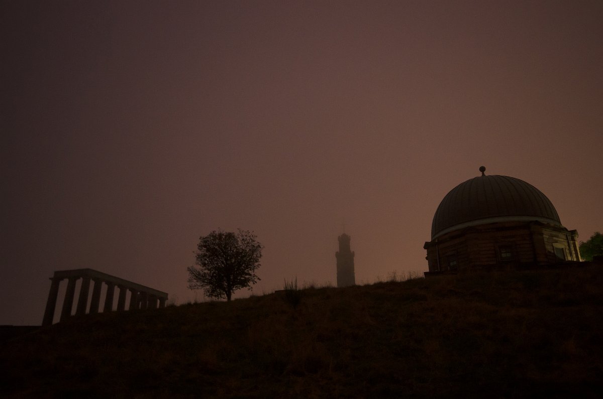 47 Edinburgh tak trochu zadumaně a mysteriózně vyčkává, jestli se zítra stane hlavním městem nového státu či nikoliv. Jen paprsek světla vychází zpoza Scottova památníku.