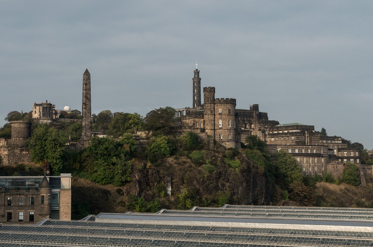 26 Čedičový kopec Calton hill se vypíná na druhé straně údolí naproti hradu.