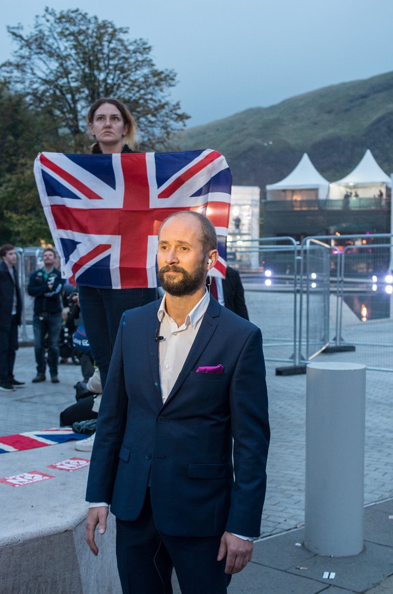 46 Atmosféra je nejhutnější večer v den hlasování. Probíhají shromáždění a demostrace před budovou Nového parlamentu i jinde. Tisíce Skotů očekávají konečné výsledky v hospodách a barech, které zůstaly otevřeny přes noc.