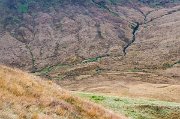 8 Říčka Mollochan Burn se klikatí širokým zamokřeným údolím Glen Mollochan a naše boty dostávají zabrat. Ale drží!