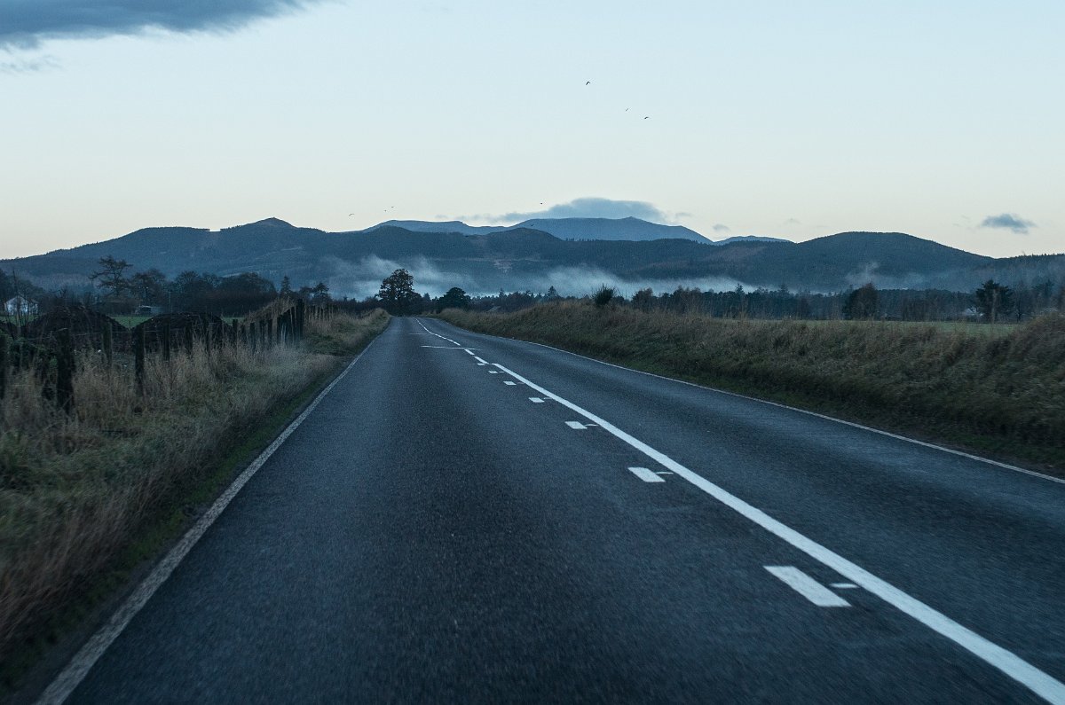 2 Ještě než se rozední, vyrážíme z parkoviště od jezera Loch Muick do skalnatých výšin.
