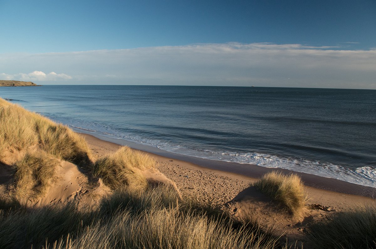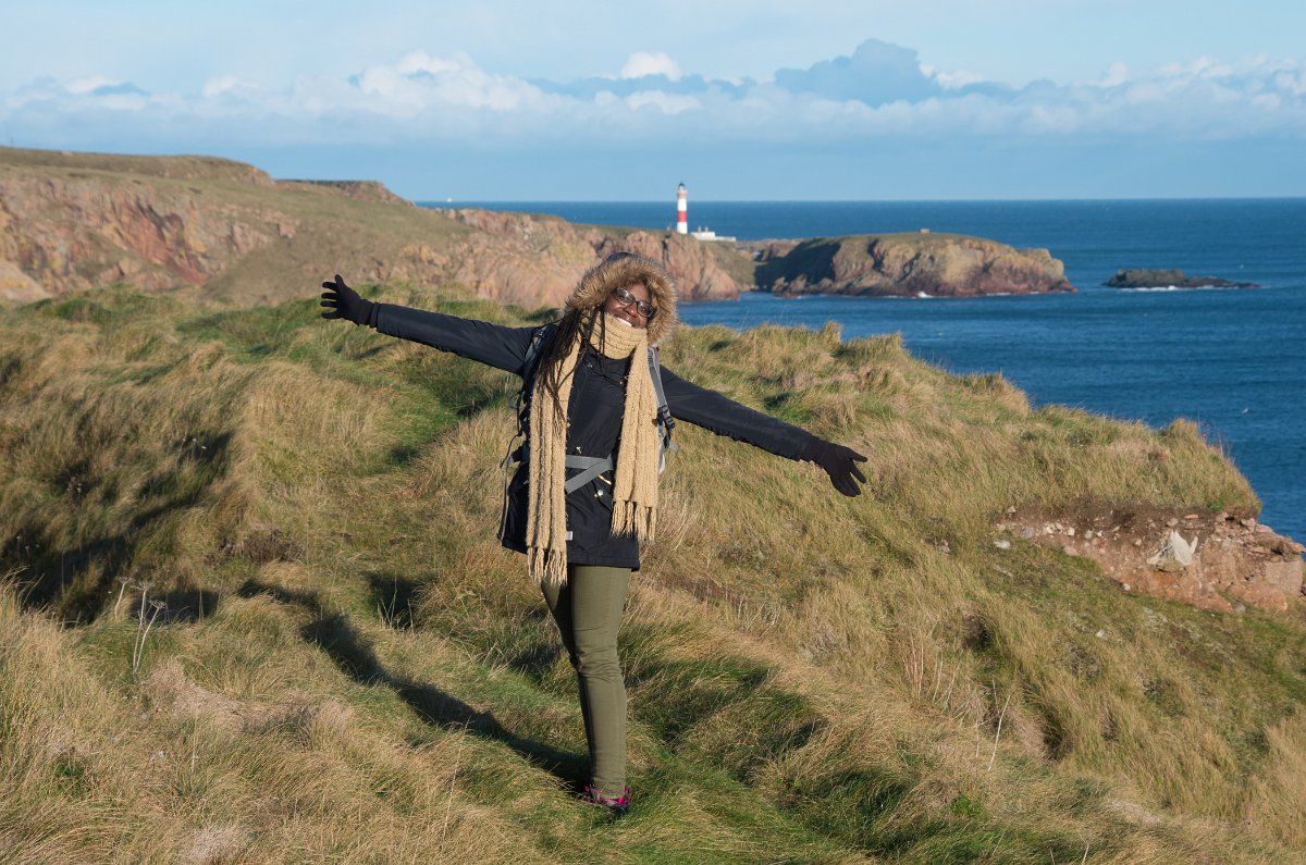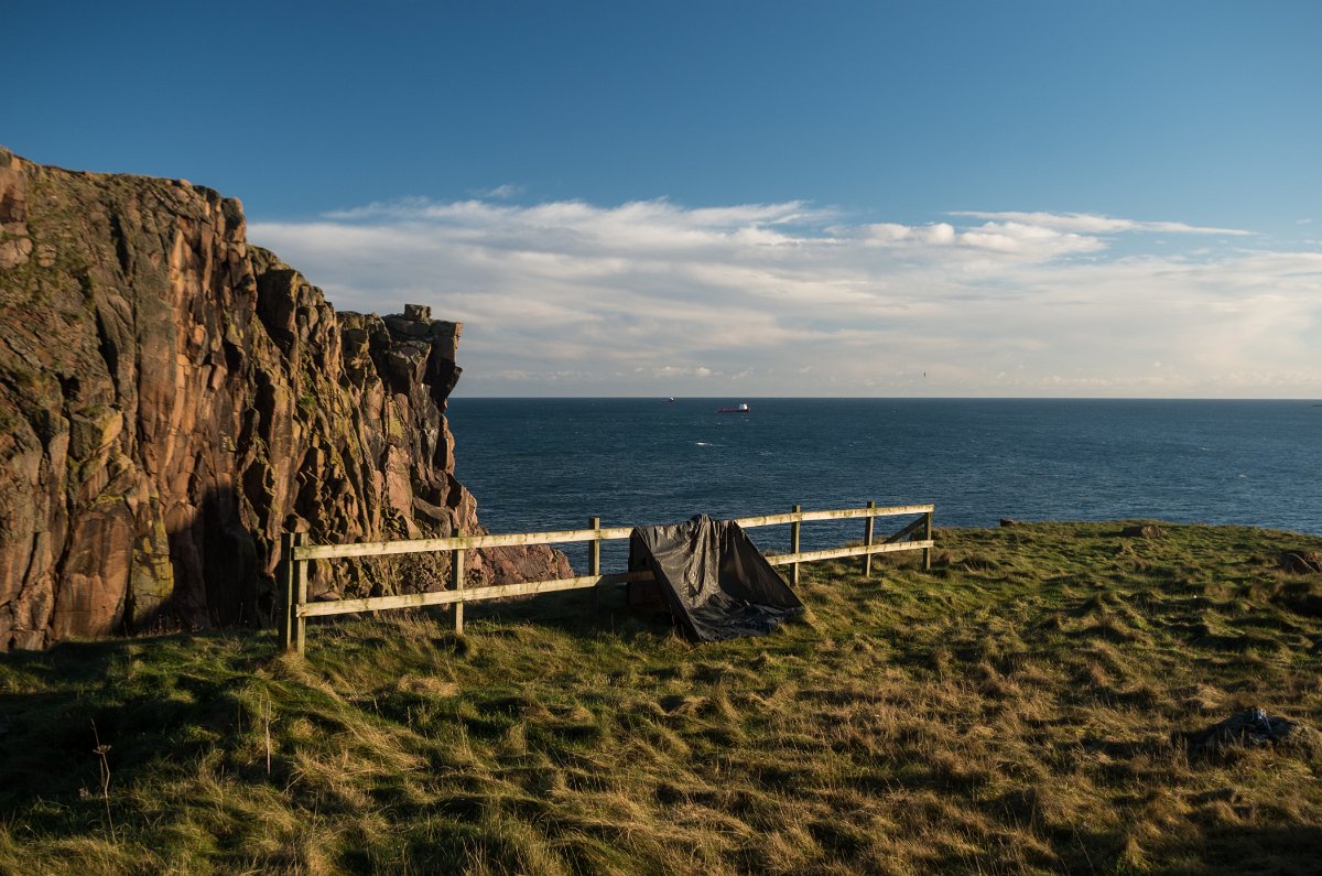 19 (6.12.2014) Noc na hradu či na nehostinných větrných pláních nás však nelákala a tak jsme stan postavili v lesíku poblíž vesnice Cruden Bay a spalo se nám báječně. Druhý den pokračujeme v naší cestě po pobřeží k severu.