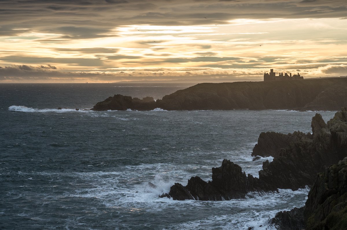 14 Nad zátokou se na skále vypíná zřícenina hradu Slains Castle.