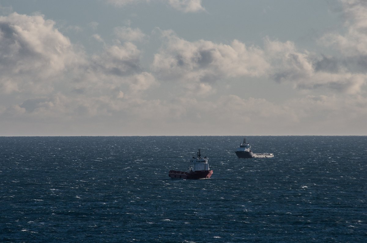 31 Na moři lze pozorovat čilý dopravní ruch. Ropné plošiny jsou nedaleko, stejně jako pevninské terminály pro zpracování surové ropy.