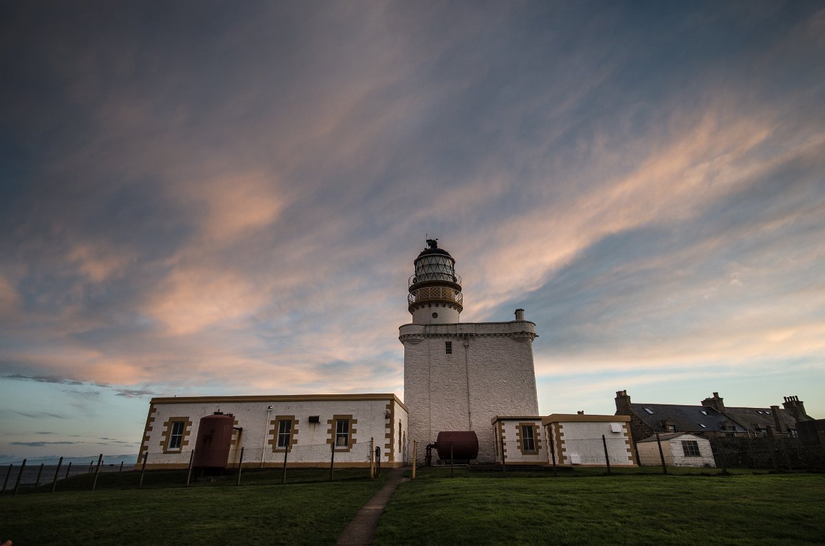 36 Maják v Bodammu signalizuje, že se blížíme ke konci naší túry. Ale výlet ještě nekončí. Stopem se dostáváme přes Peterhead do města Fraserburgh na severním výběžku východního pobřeží.