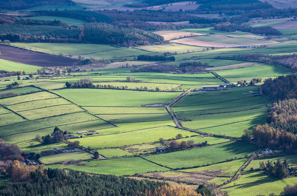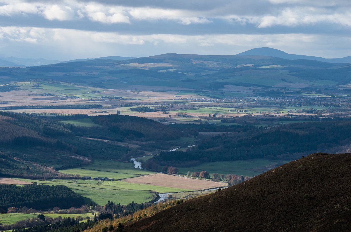 19 Při pohledu na západ se krajina postupně zvedá do oblasti Highlands, Skotské vysočiny.