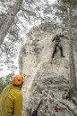 14 Nejtěžší část byla až v úplném závěru. Vyhazující spárka. Obtížnost zhruba 6. Ale byl to jen takový 10m bonbónek v úplném závěru, který šel navíc obejít chodeckým terénem, pokud by si na to někdo netroufal. Celkové hodnocení cesty - na úvod dobrá, ale obtížnostně nic extra, občas víc turistika než lezení:)