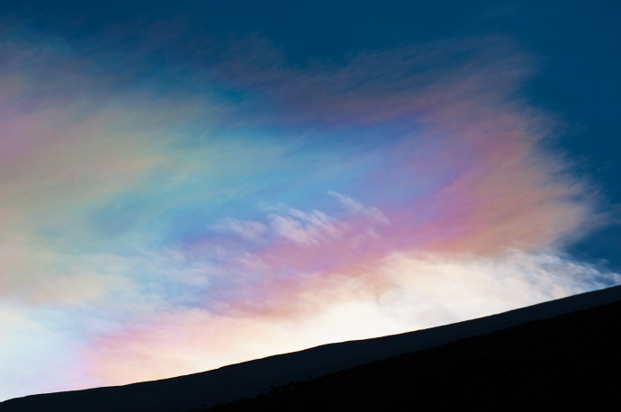 Další snímek unikátně vybarvené irizace na oblaku typu cirrostratus.