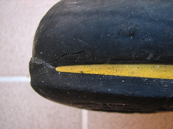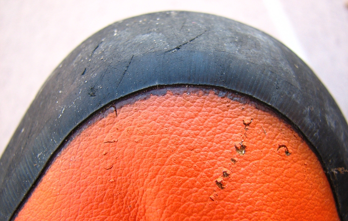 Čekáte stále na opravdové nedostatky? Tady jsou... tedy spíše jen jeden problém. Tím je celková tvrdost a odolnost spodní části podrážky. Na nejvíce namáhaných místech (vpředu a vzadu) je již dosti sešoupaný vzorek, na ostatních místech však stále drží. Právě "měkkost" a dobrá přilnavost podrážky může mít za následek její rychlejší opotřebení. Tento fakt lze vypozorovat na následujícím obrázku dole.