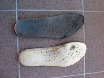 Tato podrážka je příjemně "měkká" (je vyrobena z kombinace nízkohustotního (žlutá barva) a vysokohustotního pěnového materiálu (černá barva pod patou). Výborně tak absorbuje nárazy a otřesy, bohužel se však rychleji odírá. Tento fakt lze pozorovat po dvou letech intenzivního používání zejména v přední části boty (viz. obrázek vlevo dole).